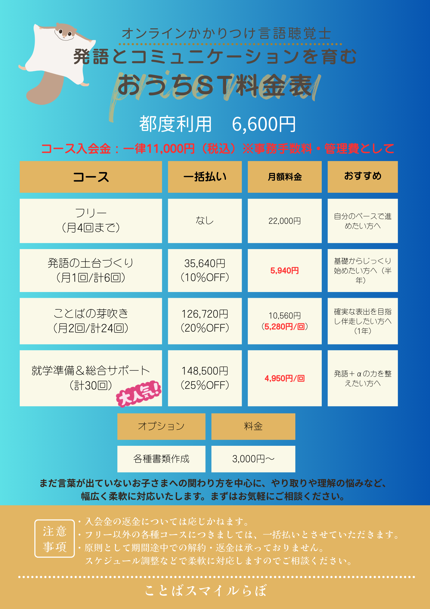 発語の土台づくり コース(月1回) 5,940円/回 |